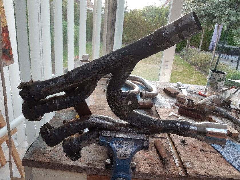In afwachting van de tank eerst maar het uitlaatsysteem aanpakken.