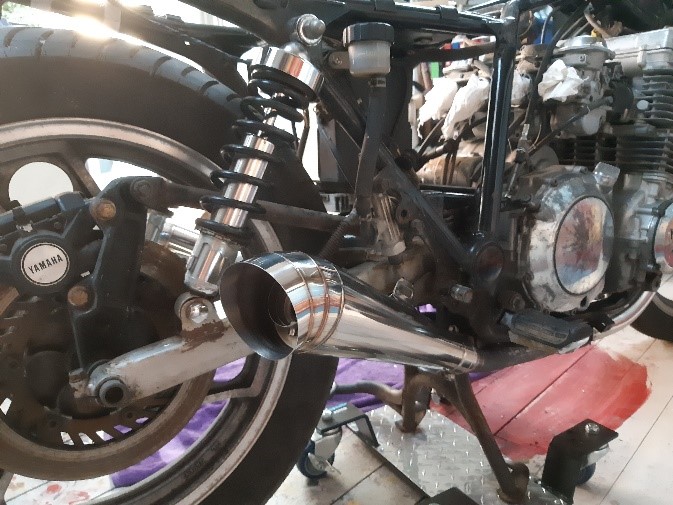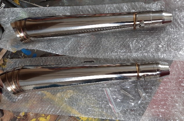 Intussen zijn de nieuwe uitlaten binnen gekomen. Die zijn van RVS en kunnen met een verloopstuk direct op de collector worden aangesloten. Er zitten dempers in, maar op het oog weet ik al dat de XJ harder zal gaan praten. Hoe hard en of dat acceptabel is dat laat nog even op zich wachten. Desnoods moet er een aanpassing aan de dempers plaatsvinden. Aan de andere kant moeten we ook tegenwicht bieden aan die scheerapparaten als de Zero’s die op de weg dreigen te komen.