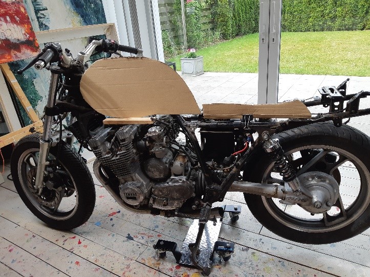 Eerst veel denkwerk, welke tank, de lengte van de spatborden, de vorm van het zitje.
