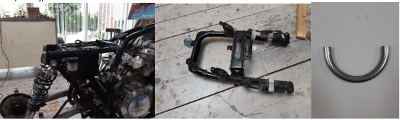 Omdat het zadel enigszins hol wordt moet het subframe onder den lichte hoek aan het frame gelast worden.